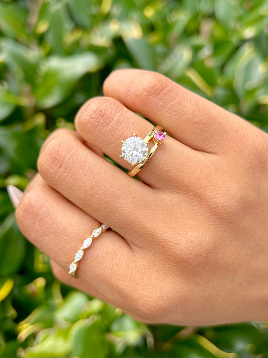 Round Brilliant Ring with Mini Pink Sapphire