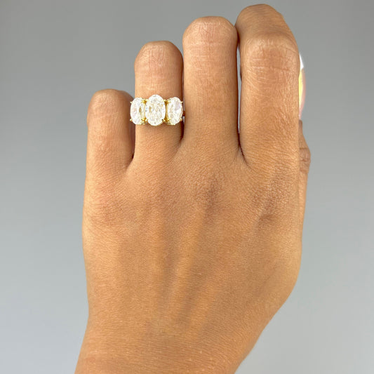 Three Stone Oval Ring with Hidden Halos